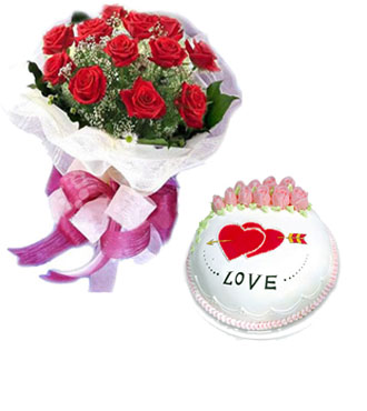 • 紅玫瑰11枝,滿天星、綠葉豐滿+8寸奶油蛋糕