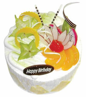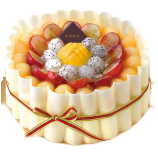 • 8寸鮮奶水果蛋糕,中心放各色時令水果,扇形巧克力插片