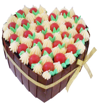 • 8寸心形水果鮮奶蛋糕,3朵奶油玫瑰花及時令水果。